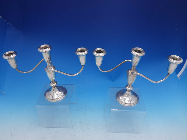 Old French by Amston sterling silver weighted pair of 3-light candelabras marked #616. They measure 8 1/4" tall x 11" . They are not monogrammed and are in good vintage condition. Stunning!