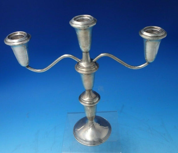 Outstanding Old French by Bailey Banks and Biddle sterling silver three-light candelabra, circa 1920. This piece measures 10 1/2" x 9 1/2" and is weighted. It is not monogrammed and is in good vintage condition. Terrific piece!