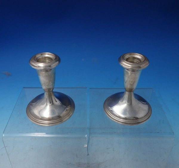 Superb Pointed Antique by Reed Barton / Dominick Haff sterling silver candlestick pair marked #432, circa 1960. The candlesticks measure 3 3/4" tall x 3" (base) and are weighted. They are not monogrammed and are in good vintage condition as shown in the photos. Wonderful!