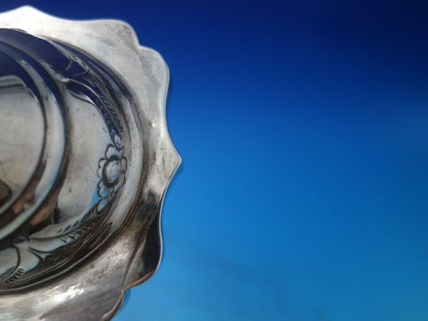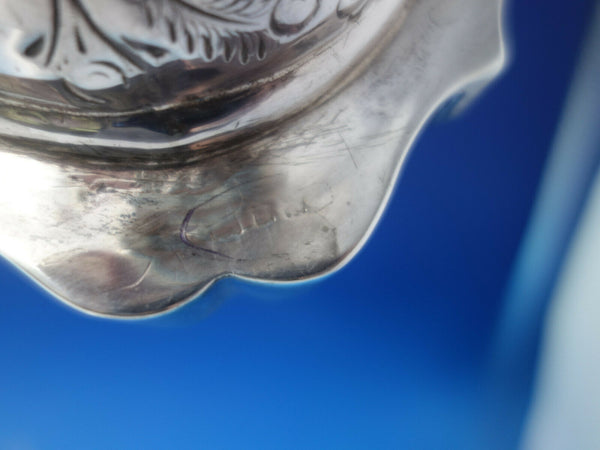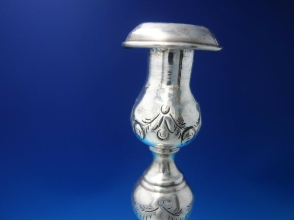 Beautiful Rose motif sterling silver Pair of hand engraved Candlesticks. They measure 12 1/2" tall x 4 1/2" (base). They weigh 15 troy ounces total. Maker is unknown as the marks are too faint to read. The