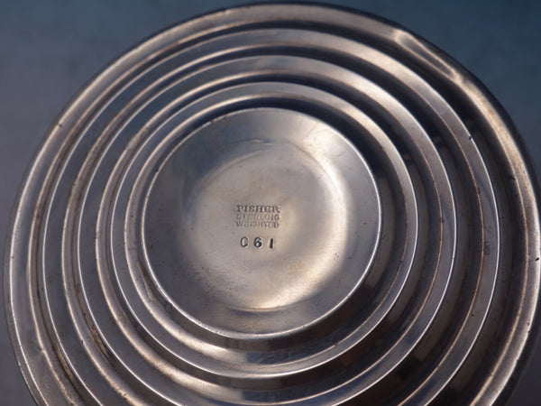 Beautiful Fisher sterling silver two-light candle holder marked #C61, circa 1960. This candle holder measures 5 1/4" x 4 3/4" and is weighted. It is not monogrammed and is in good estate condition with a few dings. Terrific piece!