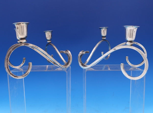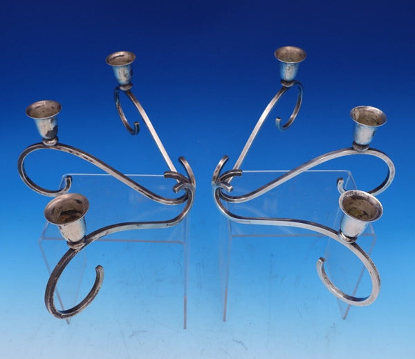 Sciarrotta Sterling Silver Candlestick Pair 3-Light All Sterling Handmade #7952