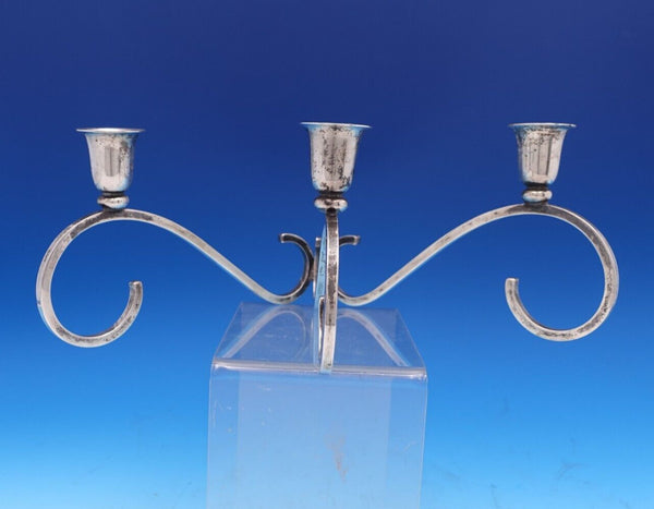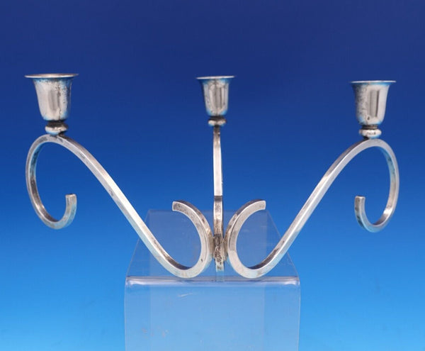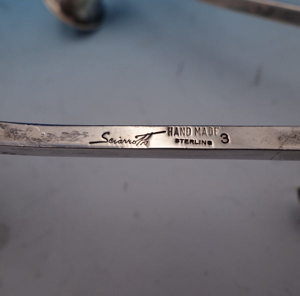 Spectacular Sciarrotta sterling silver handmade all sterling 3-light candlestick pair marked #3. The pieces measures 4 1/2" tall x 7 1/2" and together weigh 24.6 troy ounces. The candlesticks are not monogrammed and are in good estate condition. Wow!