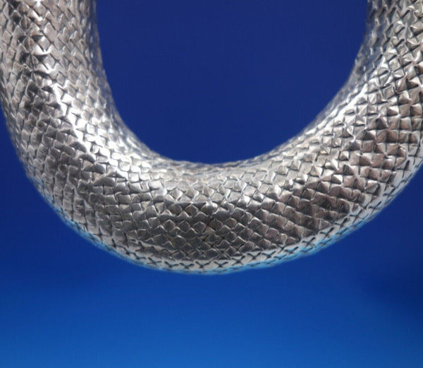 Captivating Egyptian Revival sterling silver (not stamped) candle holder with 3-D cobra design with synthetic ruby eyes (unmarked/maker unknown). This piece measures 8 1/2" x 5 1/4" and weighs 16.6 troy ounces. It is not weighted. The detail is wonderful on the face as well as the scales. It is not monogrammed and is in good vintage condition as shown in the photos. Excellent find!