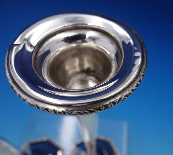 Marvelous Webster sterling silver pair of candlestick holders. The pieces measure 8" tall x 2 5/8" and are weighted. They are monogrammed (see photos) and are in good vintage condition. Fantastic!