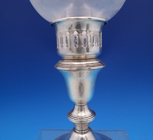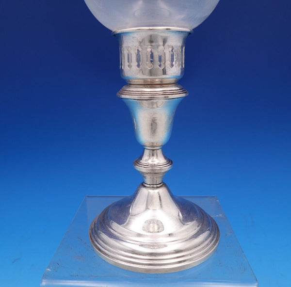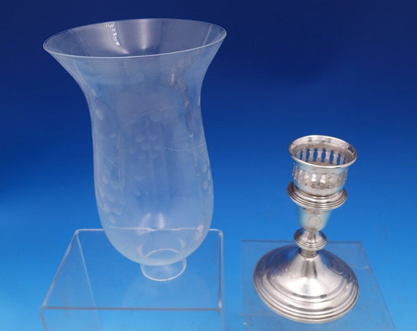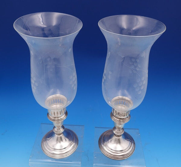 Woodward and Lothrop Sterling Glass Hurricane Lamp Candlestick Pair #47 #8072