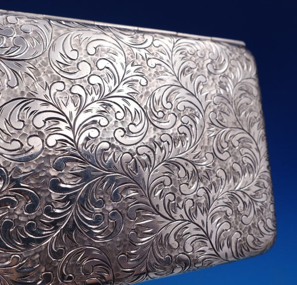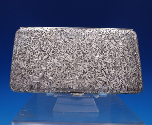Gorgeous .950 silver cigarette case with beautiful bright-cut design on exterior (maker unknown). This piece measures 6" x 3 1/8" and weighs 6 troy ounces. It is not monogrammed and is in good estate condition. Spectacular!