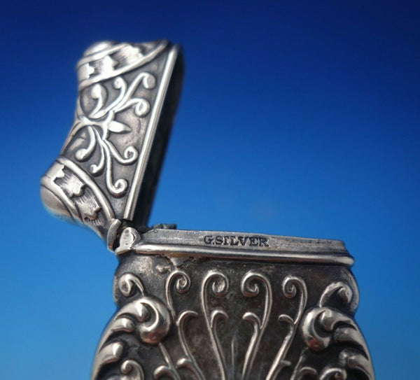 Fabulous silver tone match safe (marked G silver). This piece measures 2 1/2" x 1 1/2" and weighs 1.6 troy ounces. It is not monogrammed and is in good vintage condition. Terrific!