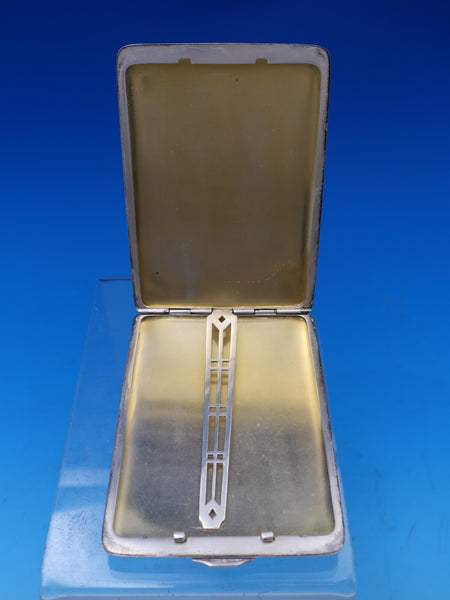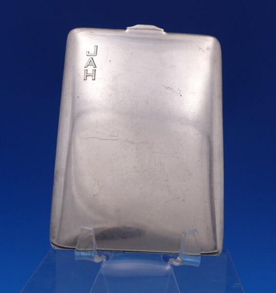 Outstanding William Kerr sterling silver cigarette case with gold washed interior and a wonderful engraving on the front depicting three golfers with wording "One up and two to go" (see photos). It is marked #4680-A27. This case measures 4 3/4" x 3 1/8" and weighs 4.2 troy ounces. It has a monogram on the reverse "JAH" (see photos), and is in good estate condition. Wonderful piece!
