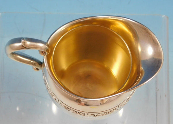 Du Barry by Durgin sterling silver creamer #2504 with gold washed interior. The creamer measures 4" x 3 1/2", and it weighs 2.72 ozt. It is not monogrammed and is in good vintage condition with some dings and dent to the base. Exceptional!