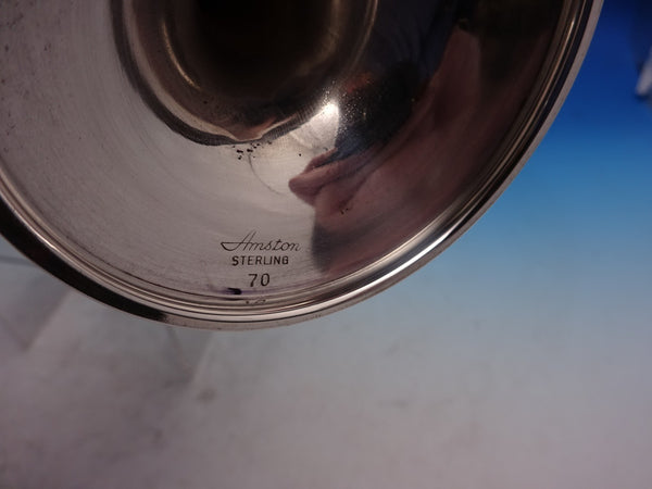 Wonderful Amston sterling silver water goblet with an unadorned design, marked #70. This goblet measures 6 1/2" tall x 3 1/4" (at rim) and weighs 3.9 troy ounces. It is not monogrammed and is in good estate condition with some minor dings, as shown in the photos. Beautiful!