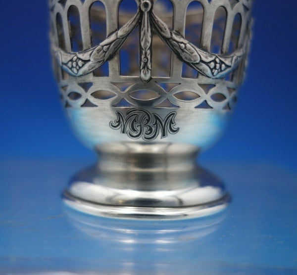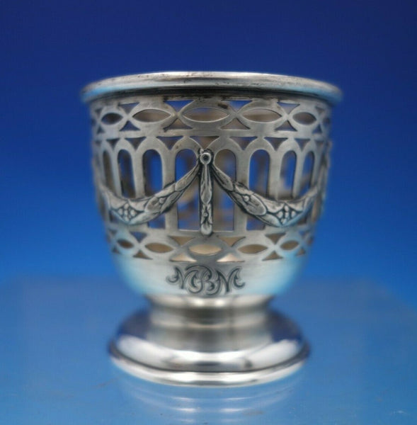 Superb Du Barry by Durgin sterling silver demitasse cup with saucer (no liner). The cup measures 2 1/2" tall x 3" and weighs 1.2 troy ounces. The saucer is marked #8, measures 3/8" tall x 4", and weighs 1.6 troy ounces. The pieces are monogrammed (see photos), and are in good vintage condition. Remarkable!