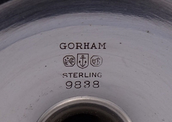 Wonderful Etruscan by Gorham sterling silver water goblet marked #9838. This goblet measures 6" tall x 3" (base), and weighs 6.6 troy ounces. It is monogrammed (see photos), and is in good estate condition with minor dents inside as shown. Remarkable!
