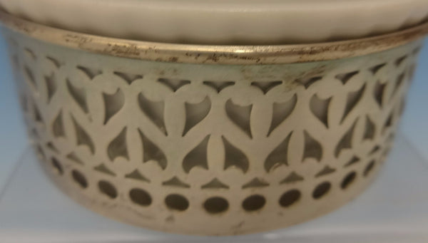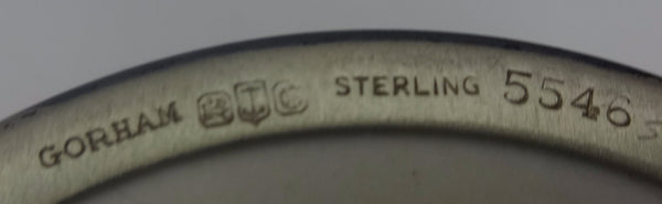 Gorham sterling silver ramekin cup #5546 with lenox liner circa the 1930's.  It features a stylized heart-shaped pierced design.  This piece measures 1 3/8" tall, 5 1/2" long, and the total weight with liner is 4.5 ozt.  It is not monogrammed and is in excellent condition.  Wonderful!  SKU#0436.