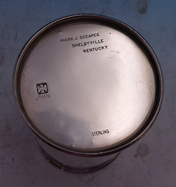 Exceptional Mark J. Scearce sterling silver presidential mint julep cup with lovely beaded design marked RMN. This cup measures 3 3/4" tall x 3" (base) and weighs 4.5 troy ounces. It is not monogrammed and is in good estate condition as shown in the photos, with some minor dings. Terrific!