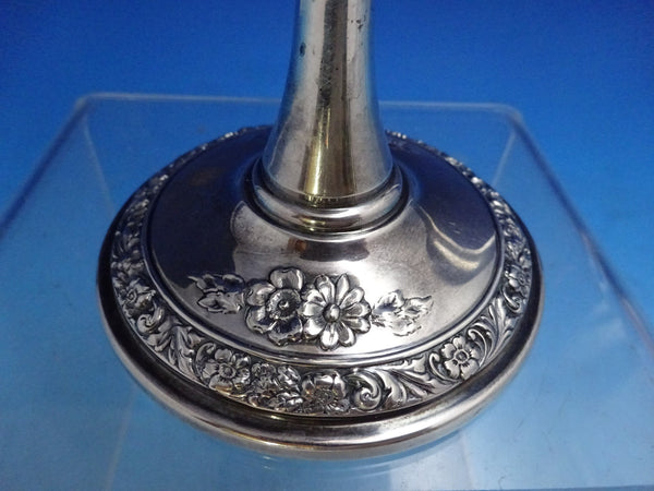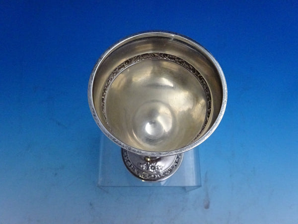 Beautiful Meadow Rose by Wallace sterling silver water goblet marked #H220. This goblet measures 7" tall x 3 1/4". Weight varies on available stock between 4.9 troy ounces and 5 troy ounces. It is not monogrammed and is in good estate condition, as shown. Will be beautifully polished prior to