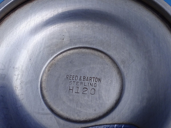 Superb Reed and Barton sterling silver water goblet with gold-washed interior (Queen Elizabeth in catalog) marked #H120. This goblet measures 6 1/4" tall x 3 1/8" (at rim) and weighs 5.7 troy ounces. It is not monogrammed and is in good estate condition as shown in the photos with some minor dings.