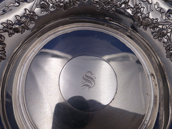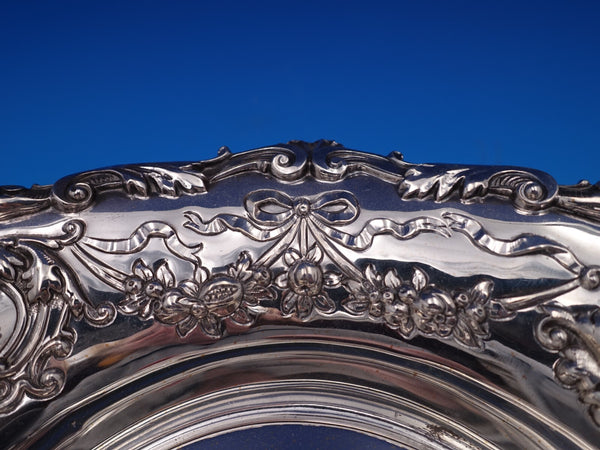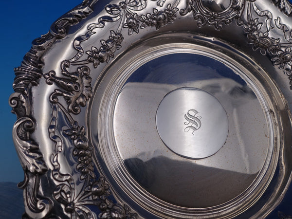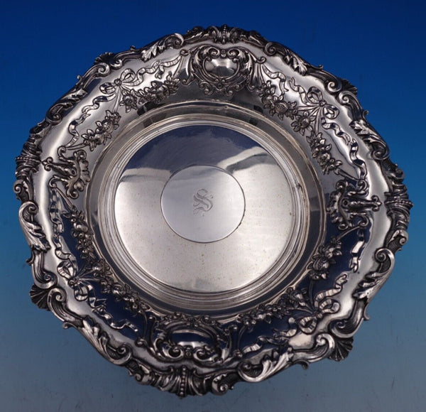 Beautiful Buckingham by Gorham sterling silver champagne coaster marked #A2176. This coaster measures 1 1/2" tall x 8 3/4" in diameter and weighs 11.8 troy ounces. It has a monogram "S" in the center (see photos), and is in good estate condition. Remarkable!