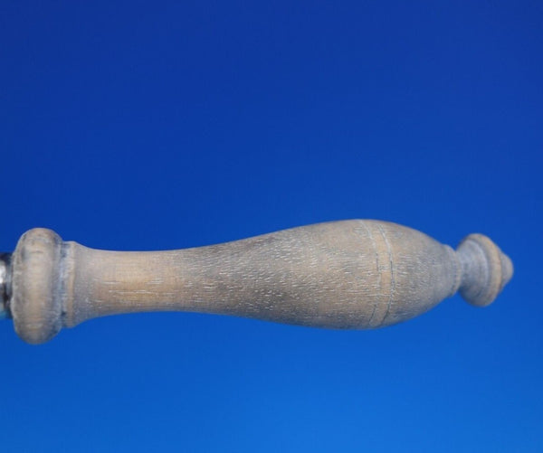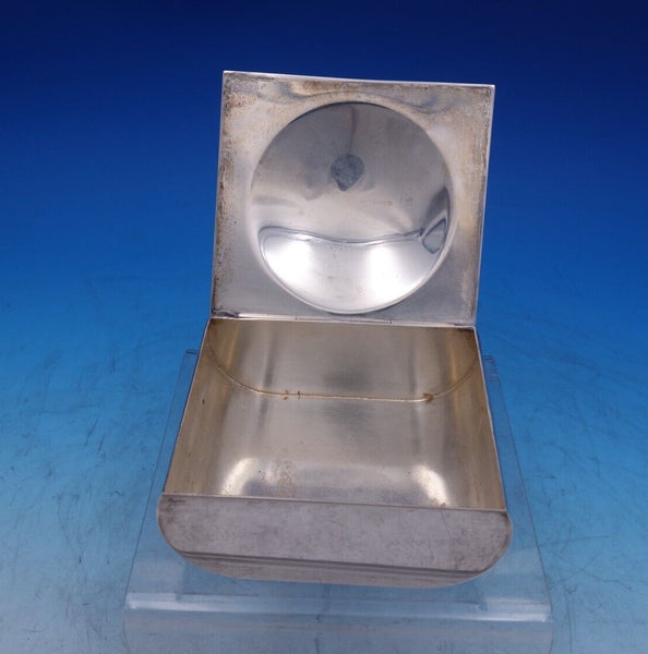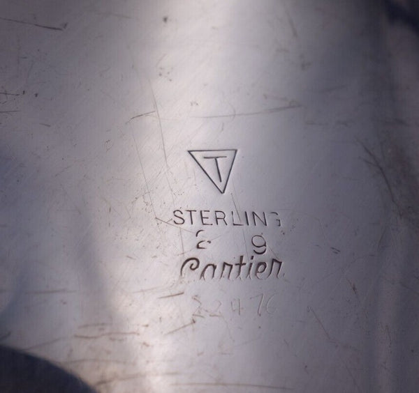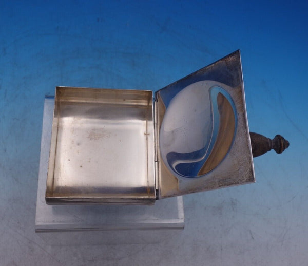 Cartier sterling silver Silent Butler. It could also be used as a serving dish with cover and wood handle. This dish measures 1" tall x 3 3/4" and weighs 8.4 troy ounces. It is not monogrammed and is in good vintage condition as shown in the photos, with wear to the wood handle as expected with age. The cover does not close completely, as shown. Unique piece!
