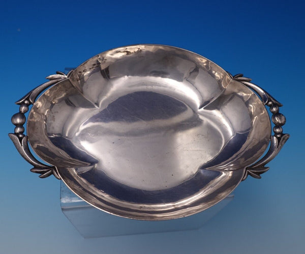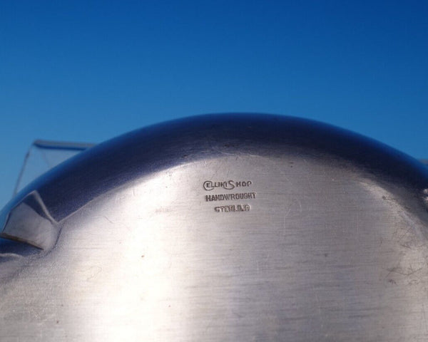 Stylish Cellini Shop handwrought sterling silver olive dish with figural olive motif on handles. This dish measures 7 1/2" x 5 1/4" and weighs 7.6 troy ounces. It is not monogrammed and is in good estate condition as shown in the photos. Exceptional!