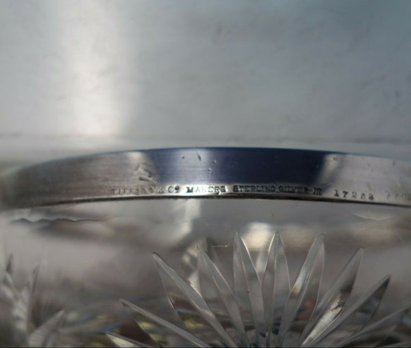 Lovely Faneuil by Tiffany and Co sterling silver and cut crystal candy dish marked #17253, circa 1910. This dish measures 1 5/8" tall x 6" in diameter. It is not monogrammed and is in good vintage condition. Beautiful!