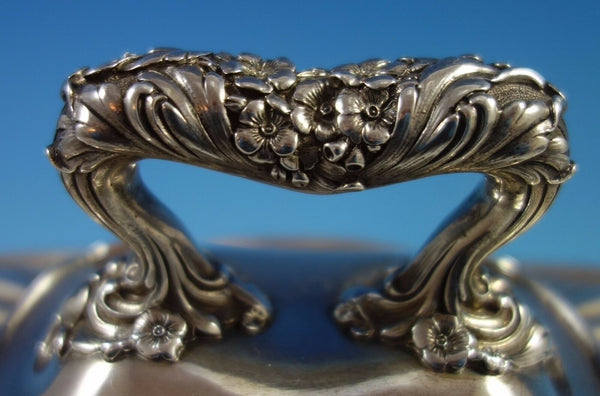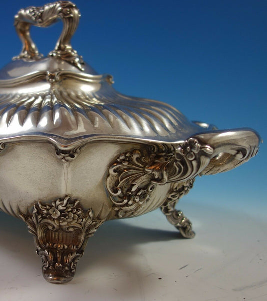 Lovely Victorian Hyperion by Whiting sterling silver covered vegetable dish footed and with handles. It is marked #2038. This piece weighs a heavy 64.8 troy ounces and measures 7" tall x 14" long x 8 1/2" wide. It is not monogrammed and is in excellent condition. Stunning piece!