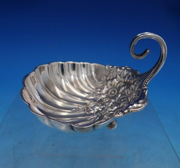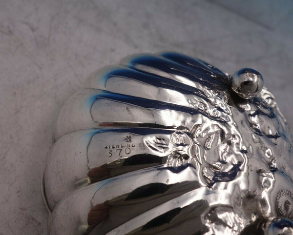 Lovely La Marquise by Reed and Barton sterling silver candy dish marked #370. This dish is in the form of a shell with flowers in the bowl and applied ball feet. This piece measures 2 1/2" tall x 3 3/4" and weighs 3.97 troy ounces. It is not monogrammed and is in good vintage condition. Marvelous and rare find!