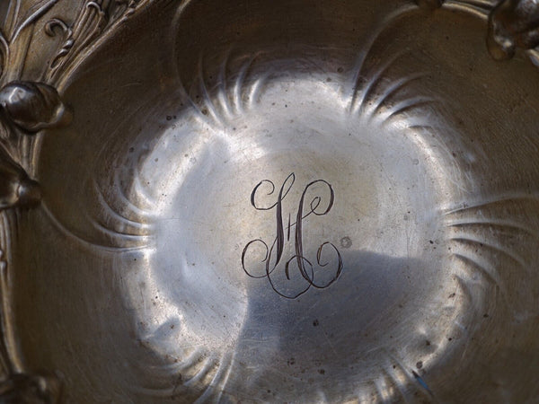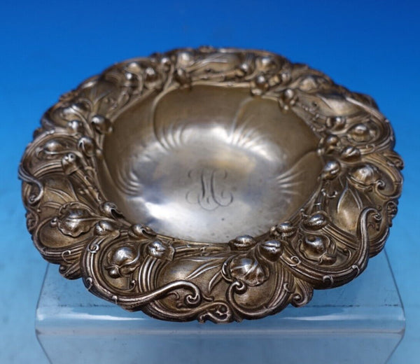 Lovely Lily of the Valley by Whiting sterling silver candy dish marked #6194. This dish measures 1 1/8" tall x 5 1/2" and weighs 2.04 troy ounces. It is monogrammed in the center (see photos), and is in good estate condition. Pretty!