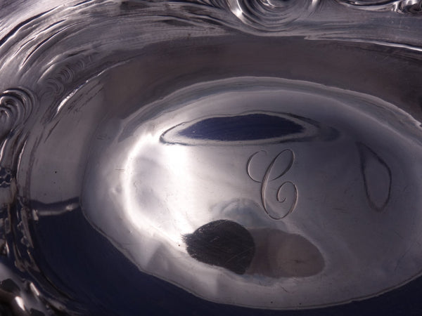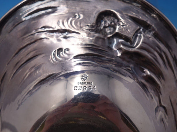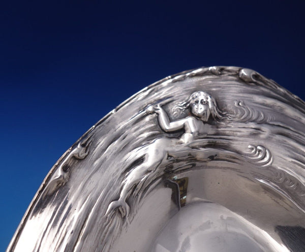 Stunning Mermaid by International sterling silver oyster dish featuring a swimming mermaid surrounded by waves. It is marked #C2884.