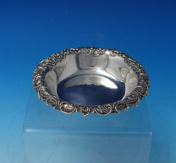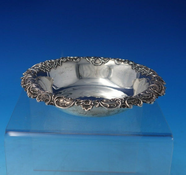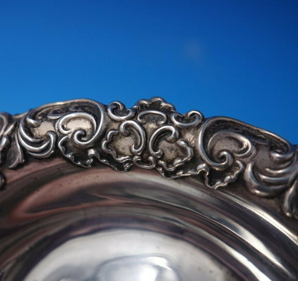 Beautiful Pompadour by Whiting sterling silver candy dish marked #5419. This piece measures 1" tall x 5" in diameter and weighs 1.53 troy ounces. It is monogrammed on the bottom (see photos) and is in good vintage condition. Lovely!