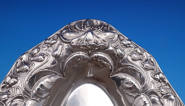Lovely Poppy by Gorham sterling silver nut dish marked #A2737. This dish measures 7" x 5 1/2" x 1 1/4" and weighs 3.6 troy ounces. It has a monogram in the center (monograms vary), and is in good estate condition. Pretty!