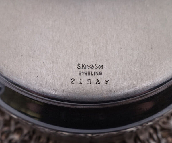 Lovely Repousse by Kirk sterling silver champagne coaster marked #219AF. This coaster measures 2 1/2" x 9 1/2" and weighs 15.3 troy ounces. It is not monogrammed and is in good estate condition as shown in the photos. Beautiful!