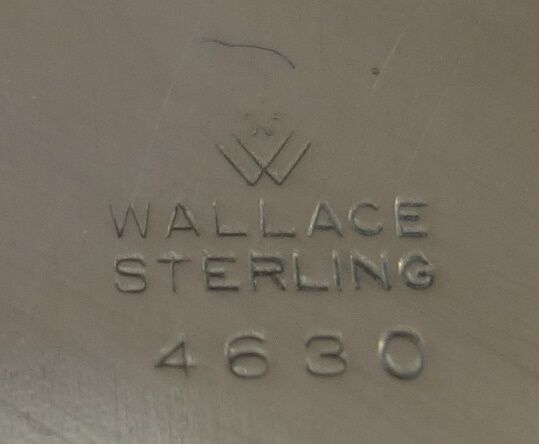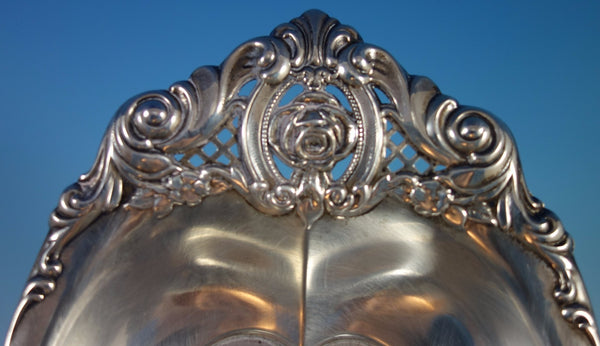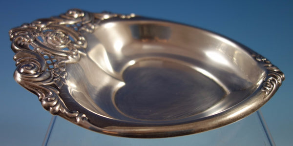 Exquisite Rose Point by Wallace sterling silver candy dish in a beautiful heart shape design. The dish is marked with #4630, it measures 5/8" x 6 1/2" x 4 1/2", and it weighs 2.3 ozt. It is not monogrammed and is in excellent condition.