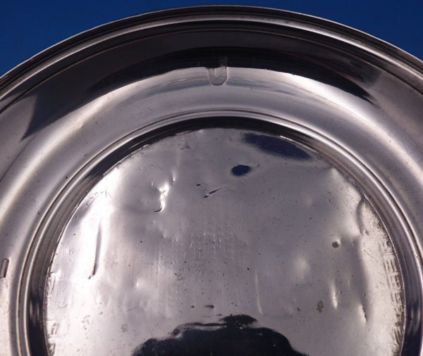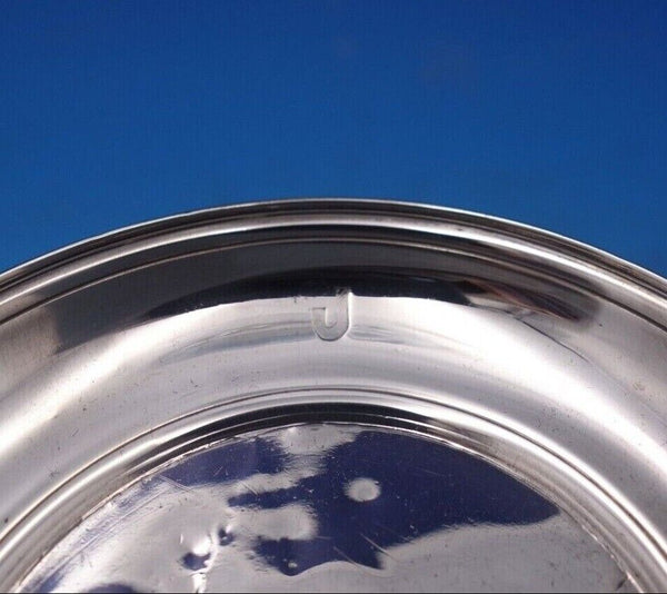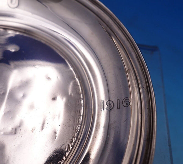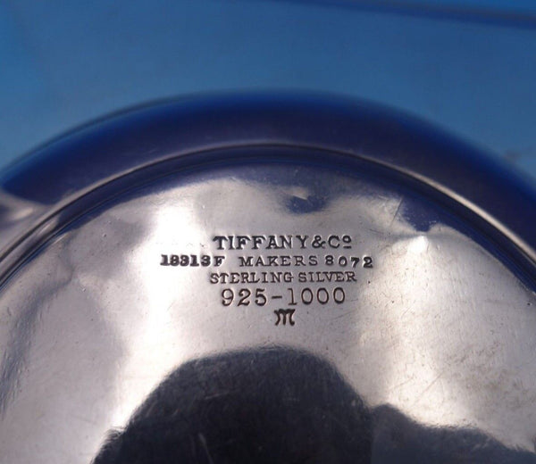 Wonderful Tiffany and Co sterling silver round candy dish marked #18313F/8072. This piece measures 5/8" tall x 4" in diameter and weighs 1.84 troy ounces. It is monogrammed and dated 1891-1916 with a worn city scape in the center (see photos). It is being offered in as-is condition as shown in the photos. Terrific piece!