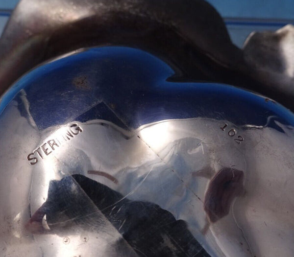 Lovely William Kerr sterling silver candy dish with irises motif marked #102. This dish measures 2" tall x 5 1/2" and weighs 2.59 troy ounces. It is monogrammed in the center (see photos), and is in good estate condition. Pretty!