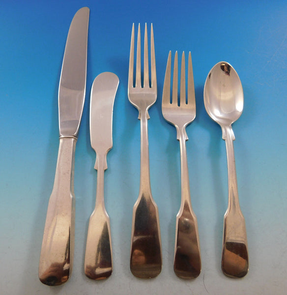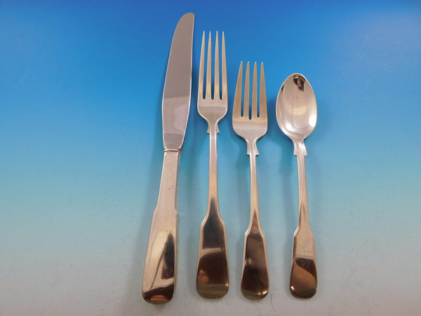 1810 Eighteen Ten by International sterling silver Flatware set, 32 pieces. This set includes:6 Knives, 8 7/8" 6 Forks, 7 1/4" 6 Salad Forks, 6 1/4" 6 Teaspoons, 6" 6 Flat Handle Butter Spreaders, modern, 6" 1 Serving Spoon, 8" 1 Flat Handle Master Butter, 6 7/8"
