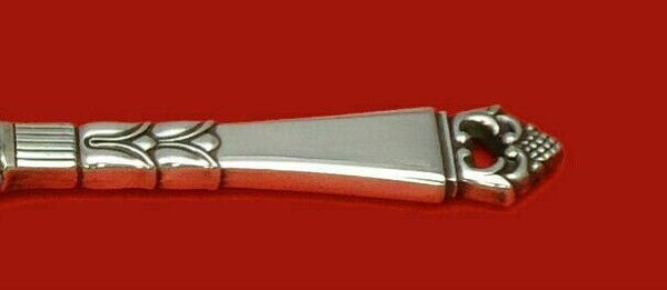 Sterling silver hollow handle with stainless blade Ham Slice, approximately 11 1/2" in length, custom made in the pattern Danish Crown by Frigast. The blade itself measures 7 1/2" with a guard at the base. One side of the blade is beveled and the other side is serrated. The tip of the blade features two prongs for picking up meat. It is not monogrammed and is in excellent condition.