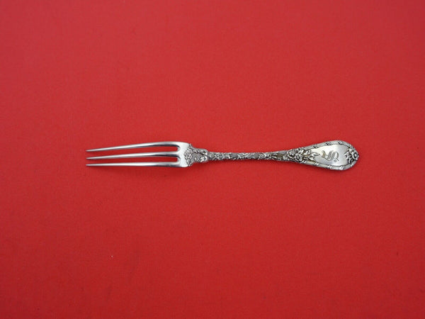 Sterling silver Strawberry Fork 4 7/8" in the pattern Dauphin by Durgin-Gorham. It is monogrammed (monos vary) and is in excellent condition.