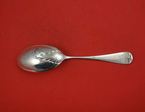 Sterling silver Berry Spoon Pointed 9 1/4" in the pattern Delhi by Gorham. It is monogrammed on the reverse (monos vary) and is in excellent condition.
