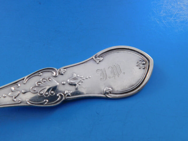 Just in! From a lifetime collection, rare sterling silver Dinner Fork 7 3/4" in the pattern Dew Drop by Shiebler, circa 1860. It is monogrammed (monos vary) and is in excellent condition.