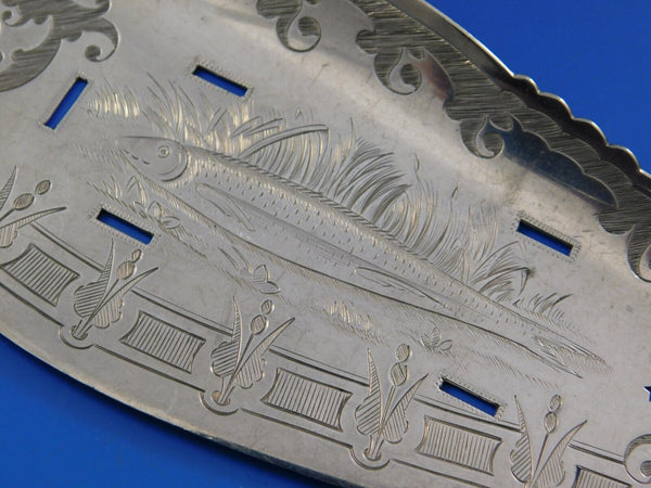 Dew Drop by Shiebler Sterling Silver Fish Server Brite-Cut Fish and Seaweed 12"