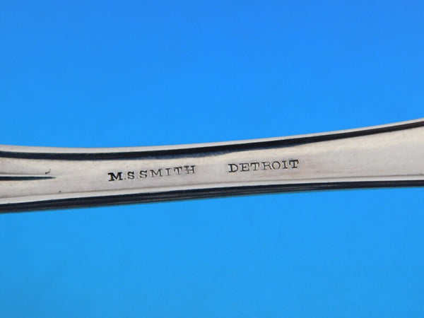Just in! From a lifetime collection, rare sterling silver Fish Server with brite-cut fish and seaweed on blade, 12" in the pattern Dew Drop by Shiebler, circa 1860. It is monogrammed (as shown) and is in excellent condition.