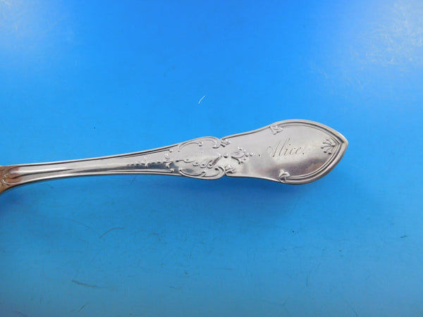 Just in! From a lifetime collection, rare sterling silver Sugar Spoon with shell bowl 7 1/8" in the pattern Dew Drop by Shiebler, circa 1860. It is monogrammed (as shown) and is in excellent condition.