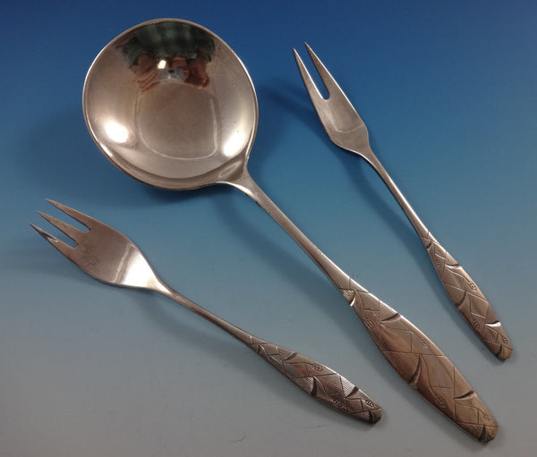 Wonderfully unique Mid-Century Modern "DIAMANT aka DIAMOND" BY A. DRAGSTED Danish sterling silver Flatware set, 117 pieces.This set includes: