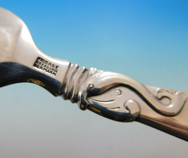 Superb Dinner Size Scandinavian Moderne "Dolphin" by Frigast Denmark sterling silver Flatware set - 35 pieces. This scarce pattern features a stylized dolphin at the base of the handle. This set includes: