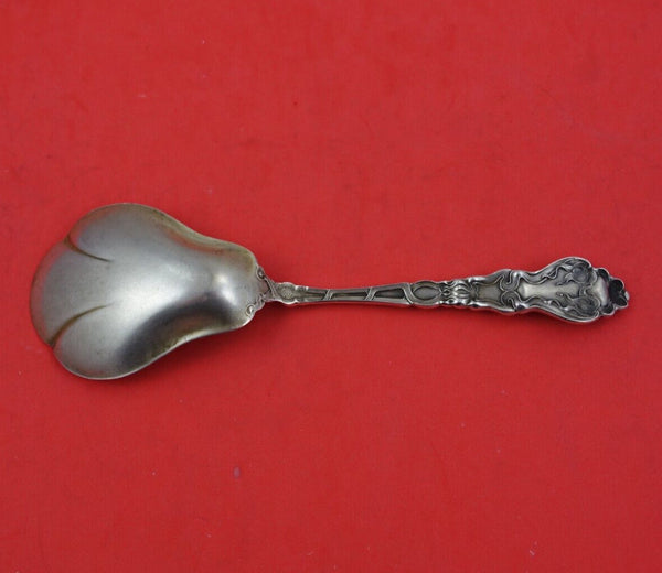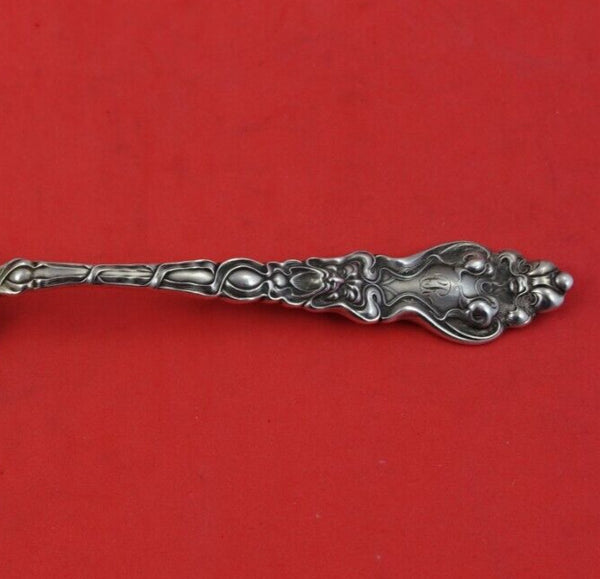 Sterling silver Berry Spoon 8" in the pattern Douvaine by Unger. It is monogrammed (monos vary) and is in excellent condition.