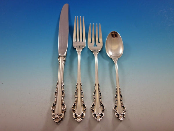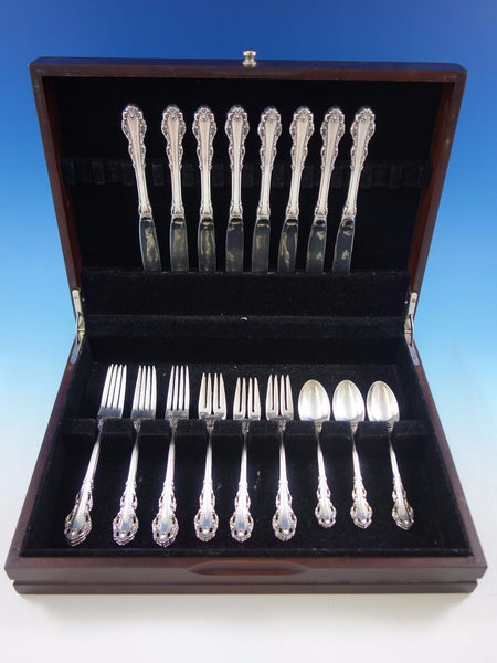 Dresden Scroll by Lunt sterling silver Flatware set, 32 pieces. This set includes: