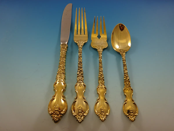 Du Barry by International Sterling Silver Flatware Service 12 Set Vermeil Gold