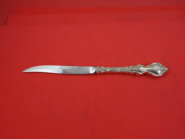 Sterling silver hollow handle with stainless blade Steak Knife, appears to be unused 9 5/8" in the pattern Du Barry by International. It is not monogrammed and is in excellent condition.