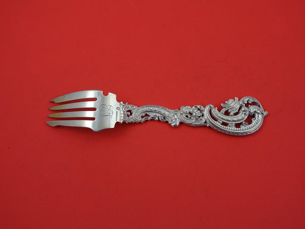 Antique sterling silver Cold Meat Fork 8 3/8" in the pattern Du Barry Pierced by Durgin. It is monogrammed (monos vary) and is in excellent condition. The die struck handle incorporates an intricate, asymmetrical, rococo, ornate, pierced design.